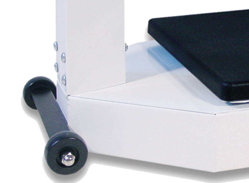 - Equipada con ruedas para facilitar su transporte, tallímetro y soporte para el tallímetro.